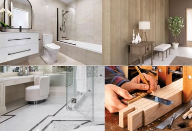 Sub-framing (metal/timber) prepares substrates to exact tolerances. Precise setting-out, cutting, fixing ensure aligned joints, reveals, and finish continuity. Access panels, service cut-outs for switches, sockets, grilles maintain functionality. Protective coatings, edge sealants suit dry/semi-wet/wet areas and maintenance
