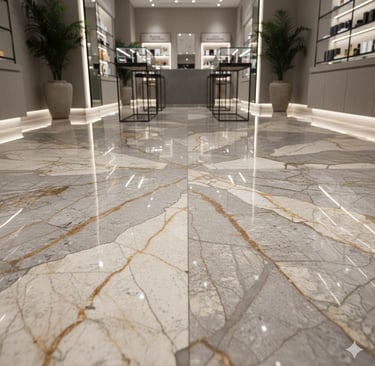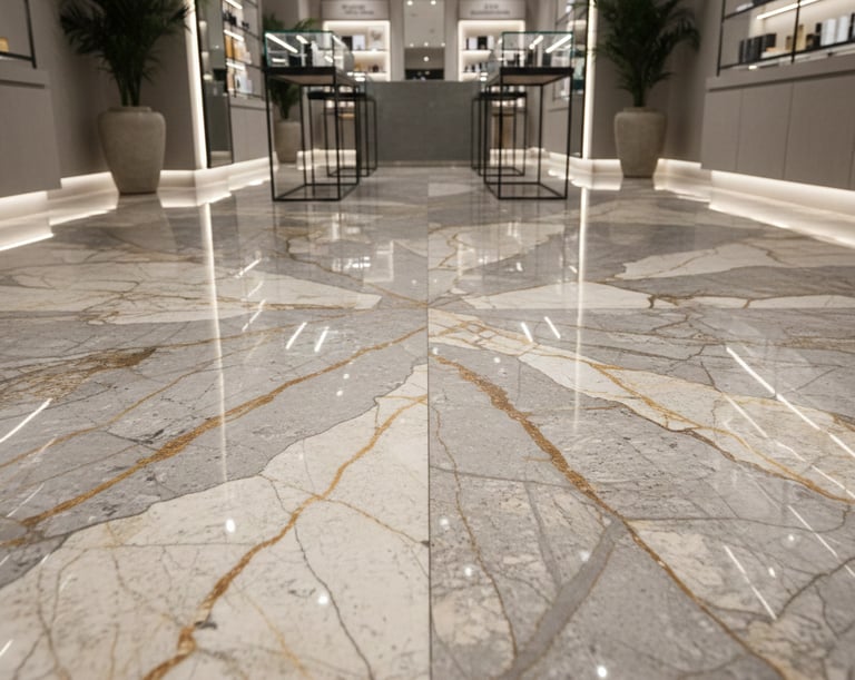 Checks confirm levels, lippage, alignment, bond strength, acoustics, and aesthetics. Sealing/cleaning prepares stone/tiles/soft finishes for handover. Protective coverings/guards shield floors until completion, with snagging support for chips, edges, stains, and defects to secure approvals.