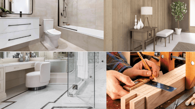 WCs, bidets, basins, urinals, shower trays, and accessories aligned with specs and water-saving standards. Mixers, taps, flush plates, shower sets, grab bars, and fittings coordinated by brand, finish, and type (surface/concealed, wall/floor-mounted).