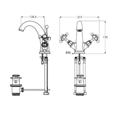 Features - Material - Brass Fitting Deck Mounted Maximum Water Pressure5.0 bar Minimum Water Pressure0.2 bar Flow Control