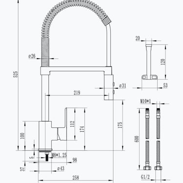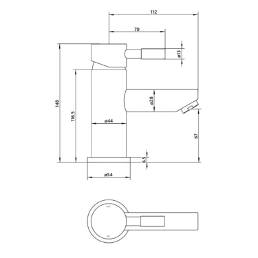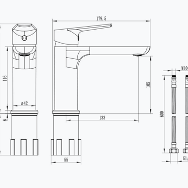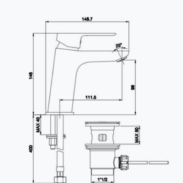Specifications - Width (mm)54Height (mm)148Projection (mm)112Inlet Connection1/2" Flexible Tails Product Weight (kg)1.45